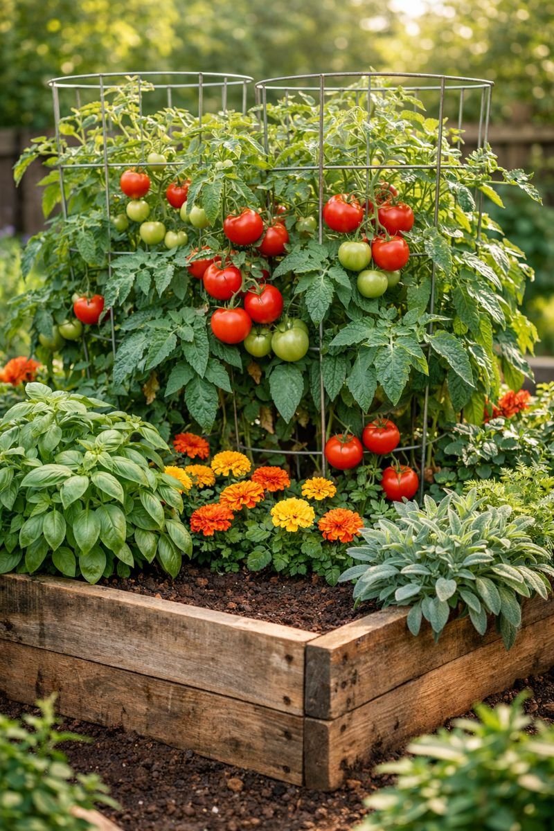 Planted together in a raised bed, these companions create a balanced, productive growing environment that supports tomatoes all season long.